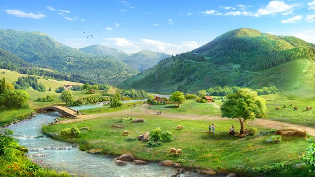 Pendant des millénaires, le petit ruisseau a continué de couler doucement autour de la base de la montagne. En suivant le parcours que la montagne avait tracé, le petit ruisseau a pu rentrer chez lui. Il a rejoint la rivière et s’est déversé dans la mer. Grâce aux soins de la montagne, le petit ruisseau ne s’est jamais perdu. Tous deux se sont entraidés, se sont renforcés mutuellement, dépendaient l’un de l’autre et vivaient ensemble.